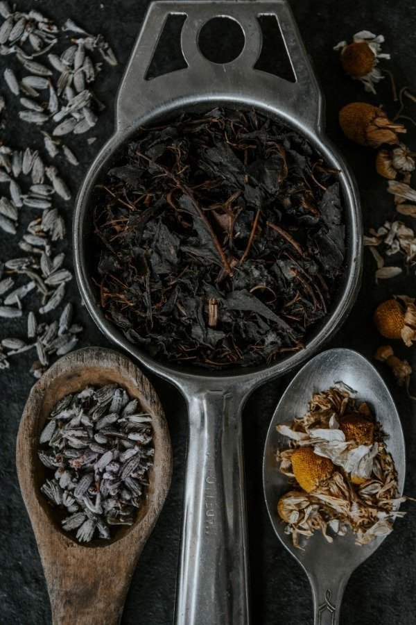 INGREDIENTES: Té negro en hebras, flores de manzanilla, flores de Lavanda