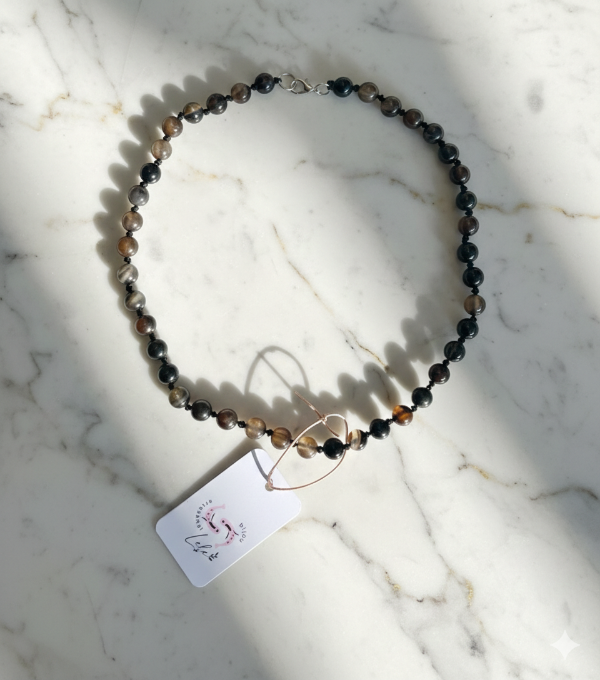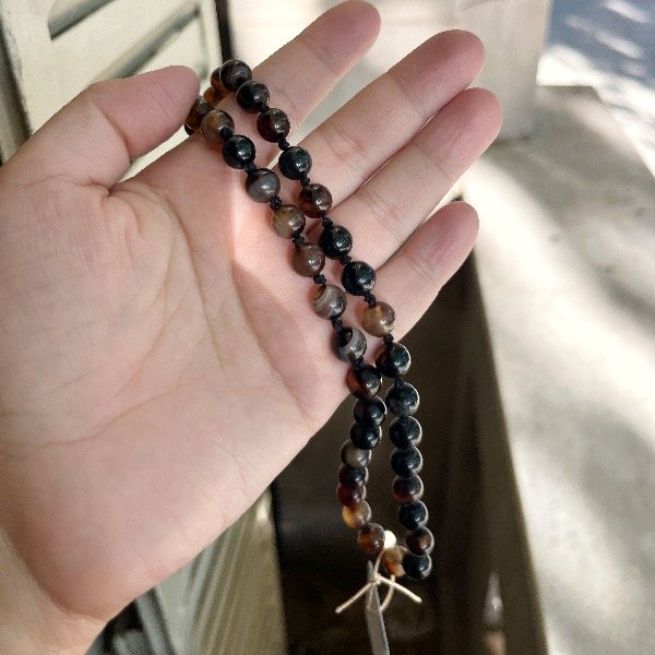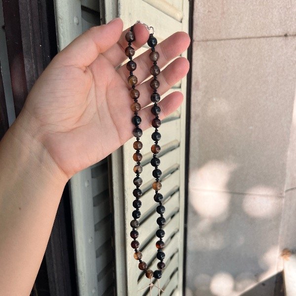 Nuestro collar Ágata negro está confeccionado con piedras naturales, hilo chino súper resistente con nudos firmes, intencionado para la protección! 🖤