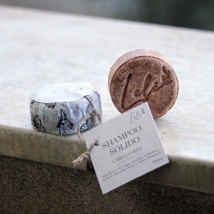 Modo de uso: humedecer muy bien el cabello, luego mojar la pastilla, frotar por todo el cuerpo cabelludo y puntas, luego masajear y enjuagar.
